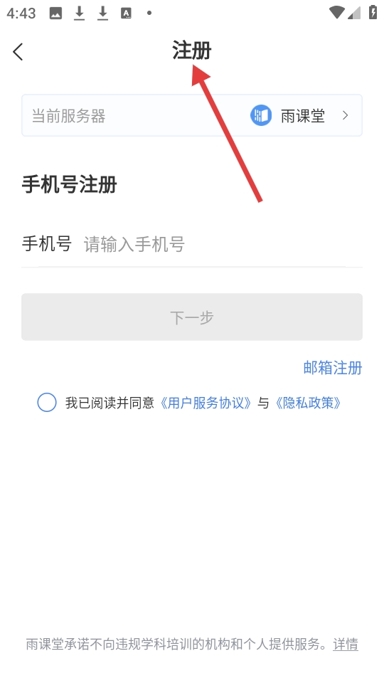4、注册页面支持手机号与邮箱注册,填写对应信息,同样要勾选同意服务协议与隐私政策方可进行下一步。