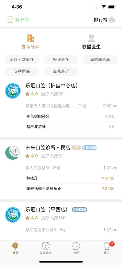 首页:为你列出附近需要口腔治疗服务的朋友