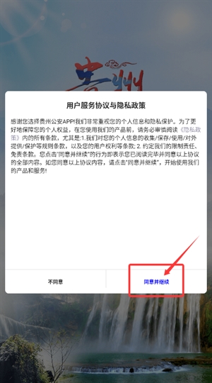 1、阅读用户协议与隐私政策后,点击“同意并继续”完成服务授权确认。