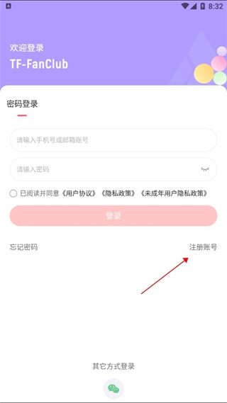 1、在本站下载好软件之后,点击进入来到登录界面选择注册账号。