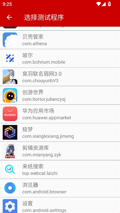 2、网络状态测试:提供软件选择功能,选择需要测试的软件,进行网络性能测试。