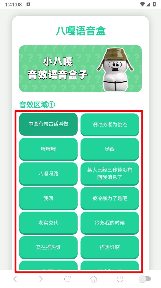 1、收录大量小八嘎风格的语音,包括搞笑、互动、场景化等多种内容,点击语音名称即可快速播放。