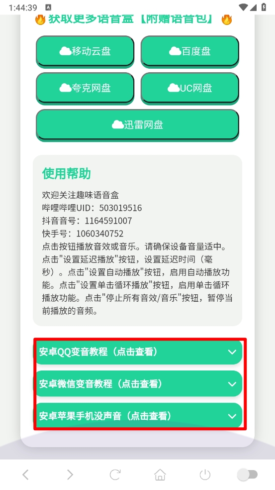 6、除了以上的语音资源之外,用户还可以点击附带网盘进入获取更多语音。