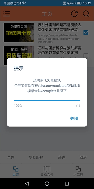 3、可同时选中多个缓存视频进行批量合并,大幅提升内容创作者素材整理效率。