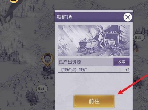 1、进入游戏后,先打开地图界面,找到铁矿场并点击前往。