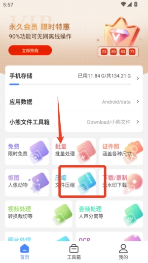 1、打开app后选择需要的功能,比如文件压缩或格式转换,点击对应图标进入操作界面。