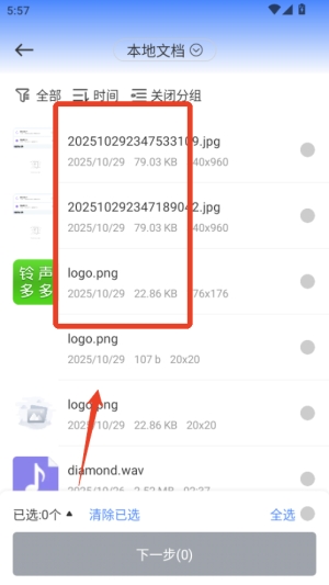 2、选择手机里要处理的文件,支持批量添加且不限制大小,系统会自动开始压缩或转换。