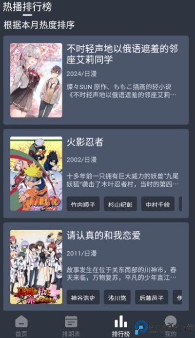 5.也可以通过排行榜,根据每月的热度查看动漫内容。