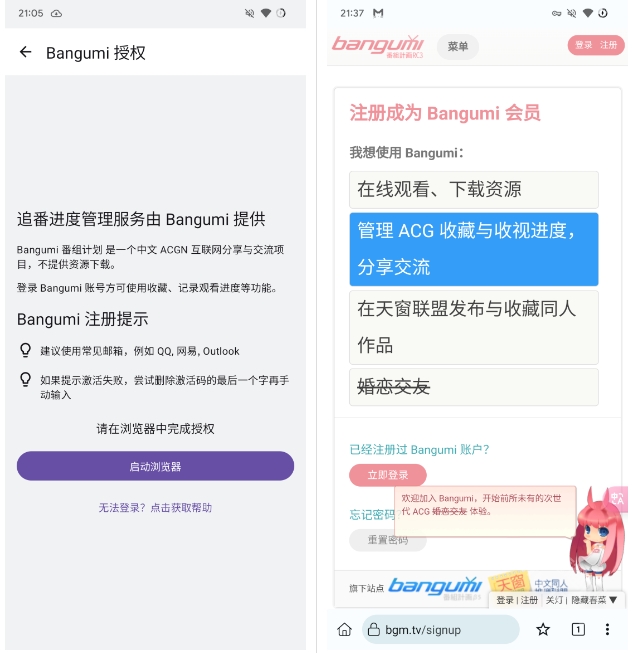 2.注册bangumi的时候选择管理ACG收藏与收视进度,分享交流哦,不然注册不了