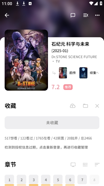 4.详情页面除了能够对番剧进行收藏外,点击观看旁边的小正方形,即可看番剧了。