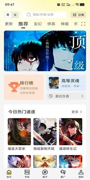 2、热门漫画、最近更新、漫画分类、漫画搜索等功能,让您快速地找到想看的漫画。