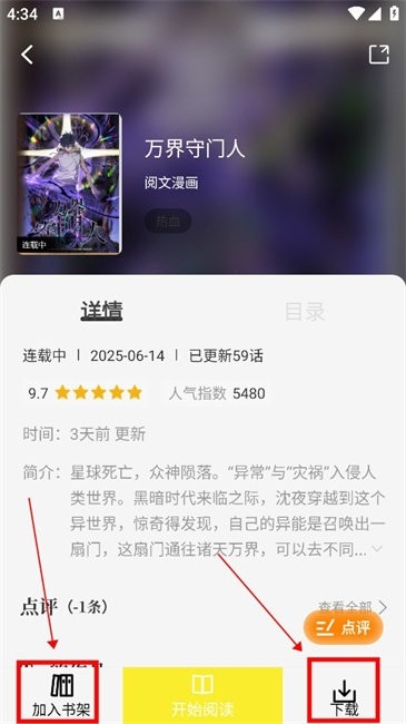 4.如果对该作品感兴趣,还能够添加到书架或是下载到本地中离线阅读
