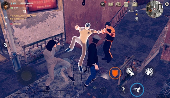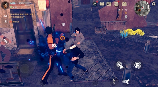 4、通过虚拟轮盘和按钮来【控制人物的打斗】,不同的攻击方式,动作模组也不一样。