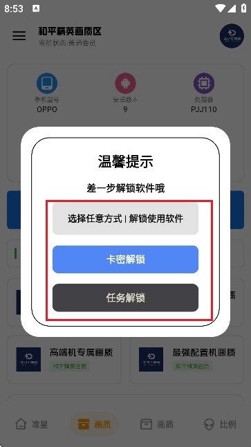 4、选择一种画质优化功能后,您需要进入相应的设置界面,并选择一种解锁方式。