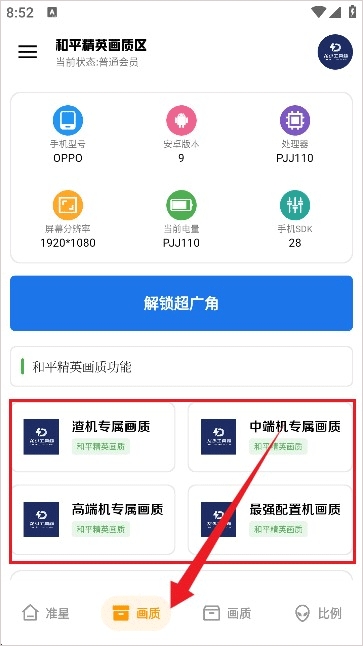 2、而在【画质】界面中我们能看到这里可进行多种处理器,分辨率等不同设备类型的画质优化功能,如图所示。中高低端都有;