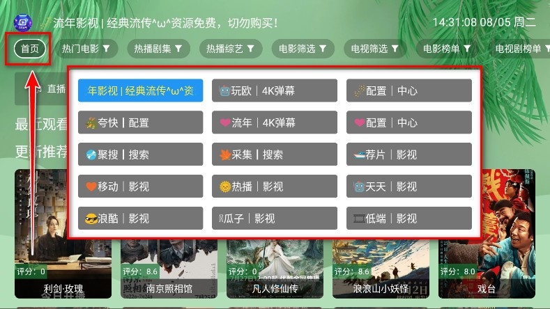 1.请在容易下载安装并打开流年影视,点击左上角的首页,即可以看到小编给大家提供的这款流年影视是内置了很多源。