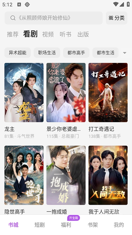 5、首页点击“短剧”板块,浏览热门短剧资源。
