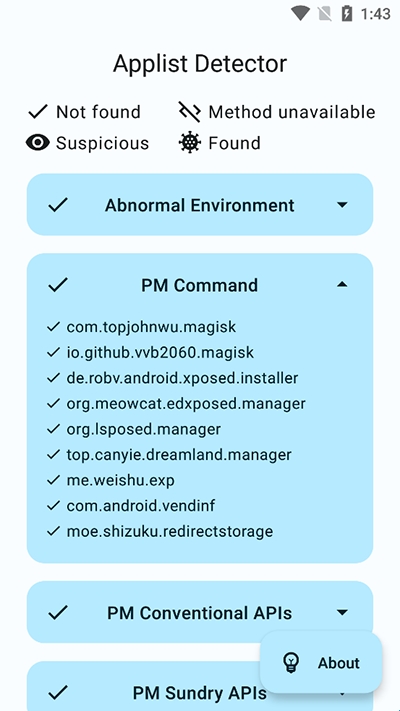 Applist Detector是一款应用防护软件,能便捷的检测手机的应用程序,检测他们的安全情况,用户能够检查具备root、Xposed的手机软件,能更好的开启了很多全新检测的模式,有超多实用功能等你体验。