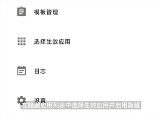 8、返回主页面,选择需要隐藏的 APP应用,点击启用隐藏,选择启用隐藏方式,启用刚才设置的模板,点击右上角的保存,这样就设置好了。