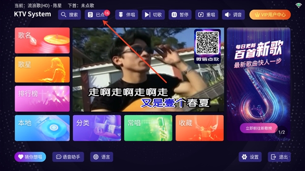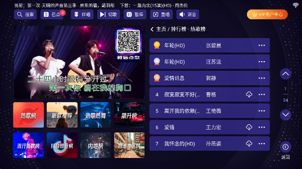 2、我们可以点击排行榜,获取到最近大家都在点歌的内容