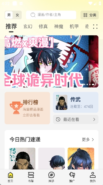 5、多样化的漫画分类导航,比如日漫、少女漫画、玄幻、都市等等自由的挑选。