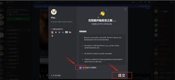 1、打开进入pika labs,点击进入Discord页面,点击接受邀请、