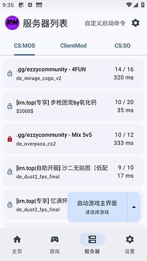2、提供丰富的服务器列表,用户可进入服务器板块,选择已下载的游戏及对应版本。