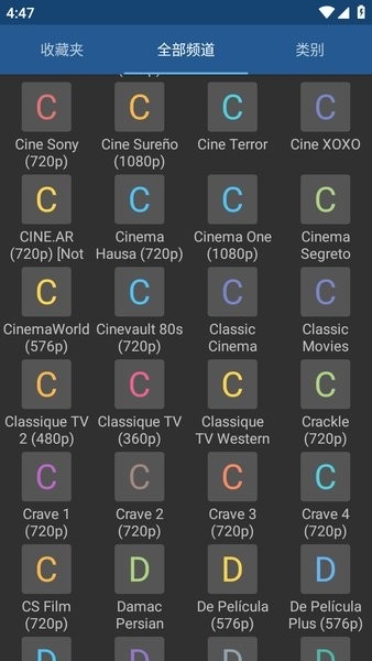 加载成功后,就会显示所有的频道,如图所示,就是全部频道;