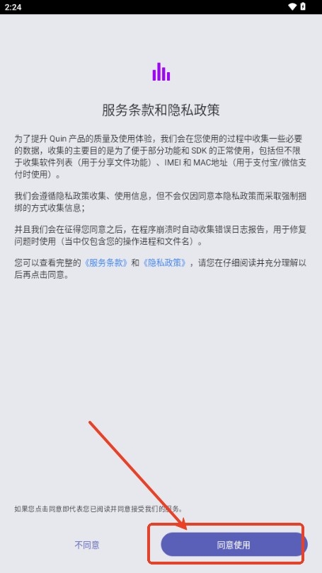 1、同意服务条款和隐私政策