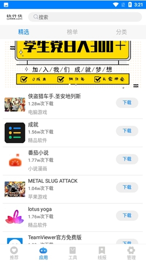 3、智能搜索框:可以直接使用搜索框查找想要的软件,无需繁琐的浏览和多次点击,快速定位所需资源。