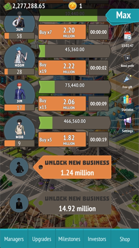 1、偶像经理人手游前期玩家需要点击偶像进行演出获得钞票,下图这里就是有经理人会自动安排演出获得钞票。