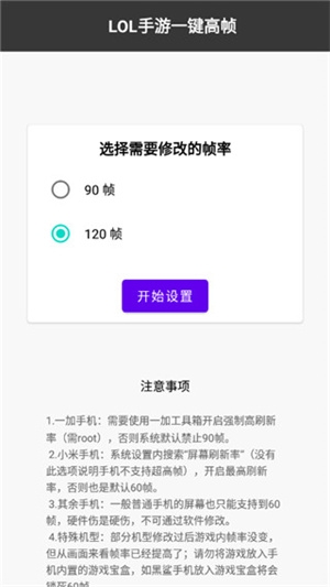 LOL手游一键高帧是一款游戏工具,可以帮你轻松应对画面不流畅的情况,不用复杂操作,功能非常强大,支持90帧和120帧选择,让玩家在游戏里面能够体验到更高的画质和图像,帧率和流畅度任你挑选,成为真正的高端玩家!