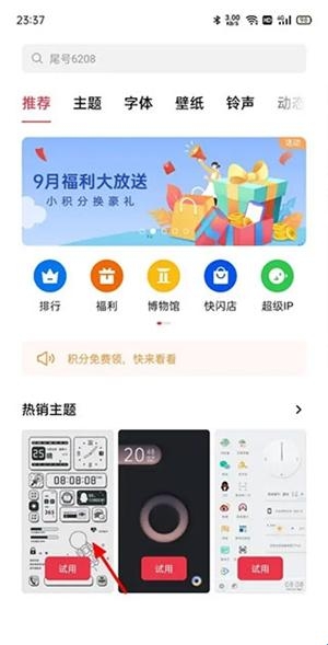1.打开主题商店,找到自己想要免费试用的主题,并点击它