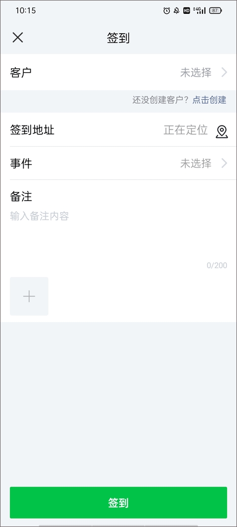3、选择签到的客户、地址、事件,备注具体的事项,上传签到的图片,最后点击签到即可。