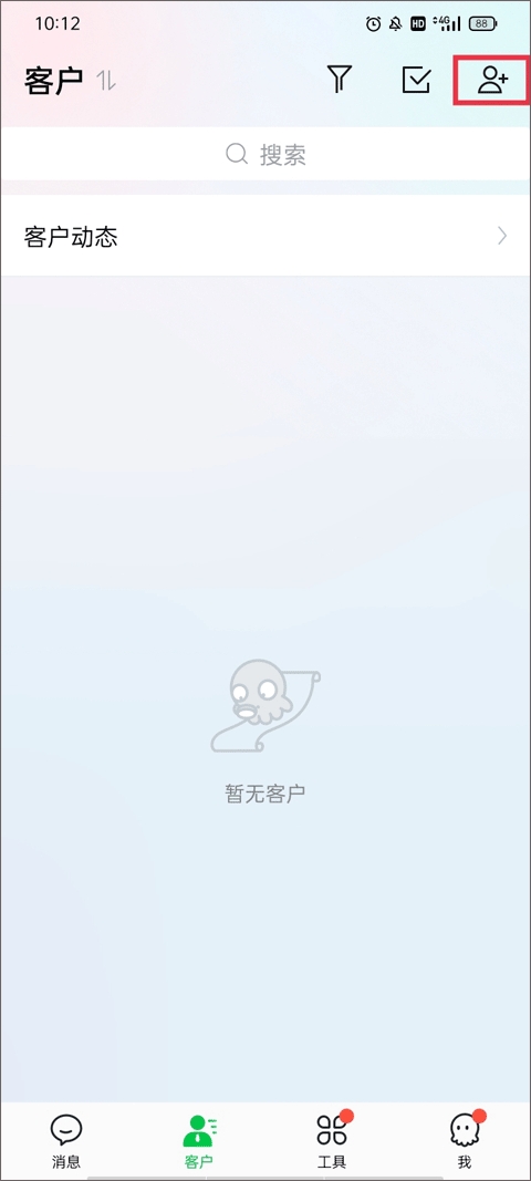 1、打开app,在ec app中进行注册并切换到软件主界面,选择下方菜单栏【客户】界面,点击右上角的小人图标。