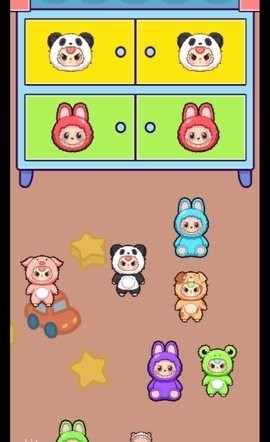 前期还有基础整理关卡,比如把玩偶分类放进对应收纳桶、用扫把清理地毯污渍等,完成后就能解锁更多房间和玩法。