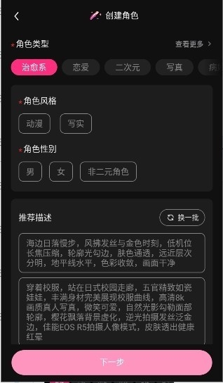 2、角色涵盖迷人、风趣、体贴、冒险等多种类型,用户可根据自己的喜好选择符合幻想的 AI伴侣。
