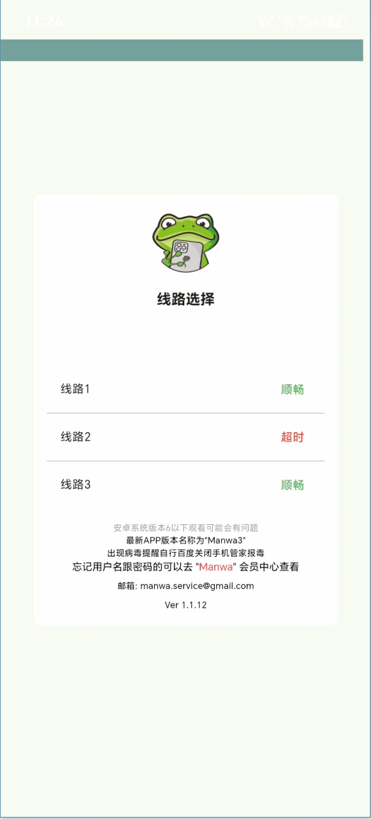 1:在“线路选择”页面,选择状态为“顺畅”的线路(如线路1)进入应用。