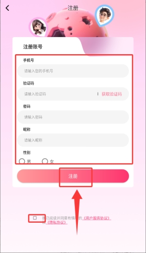 3、输入手机号、验证码等个人信息并勾选协议完成注册。