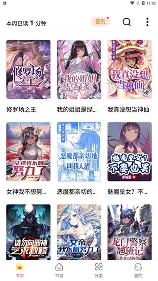 3、流畅舒适的仿真翻页效果,书架有两种分类和管理模式:白天/晚上。