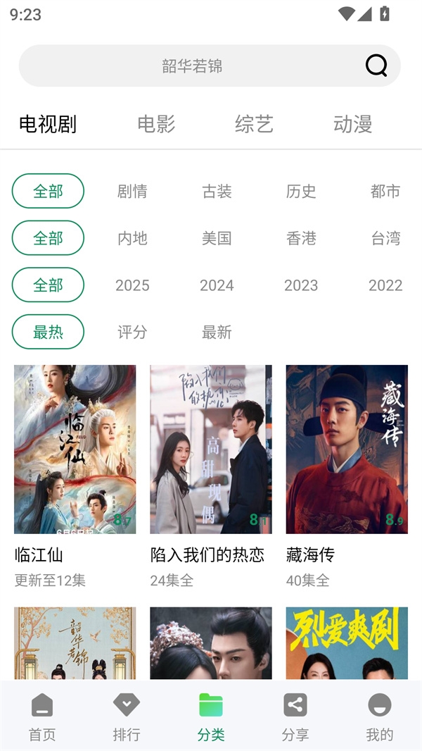 3、我们还可以通过分类功能来获取到电视剧、电影、动漫、综艺四大版块的海量影视资源。