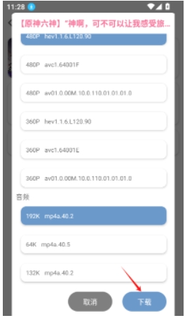 在视频下载页面,选择所需的视频参数(如分辨率)以及音频参数。