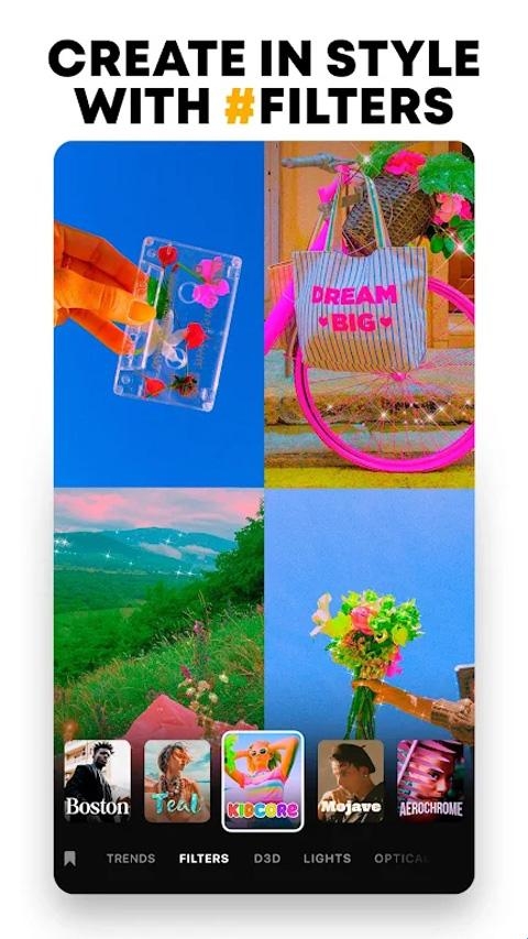 1、多样的滤镜与特效:内置了众多风格各异的滤镜和特效,从胶片到现代潮流,应有尽有,用户可以根据照片或视频的风格轻松选择,为作品增添独特的视觉表现力。