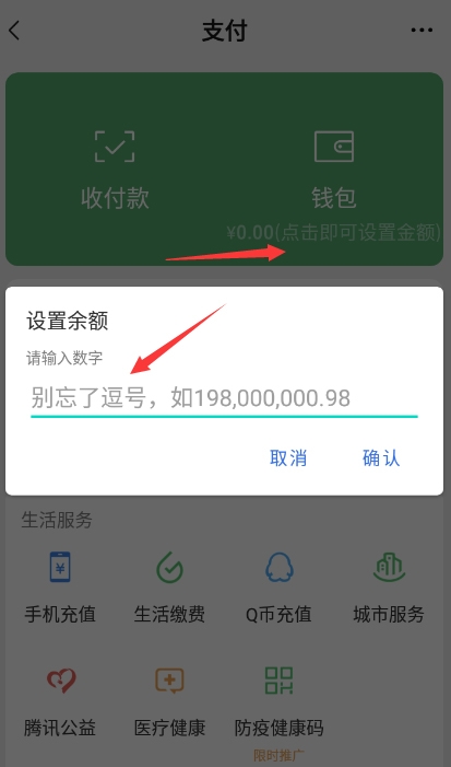 3、点击钱包,设置余额,记得要填逗号;