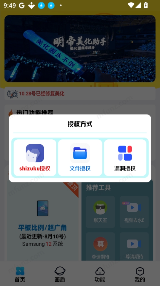 1.打开明帝美化助手,选择自动识别游戏,然后选择“授权方式”
