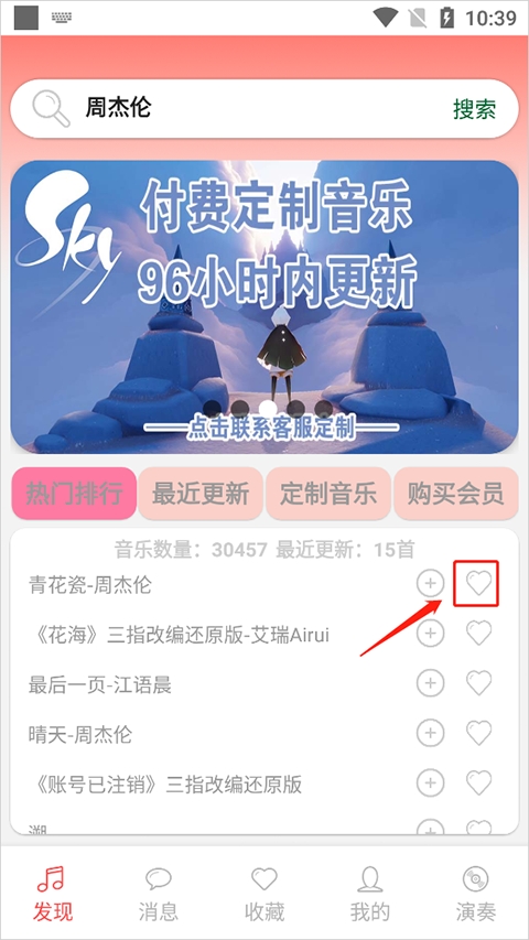 3、点击旁边的爱心就可以将这个歌曲进行收藏起来。