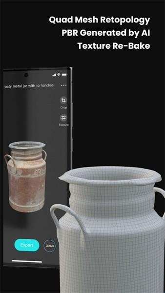 3、有时候图片大小是很重要的,特别是在在AR/VR和游戏软件中,这个App给予了低模选择项与此同时保存高清贴图。