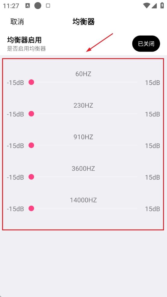 4、设置好均衡器数值后在右上角选择开启即可