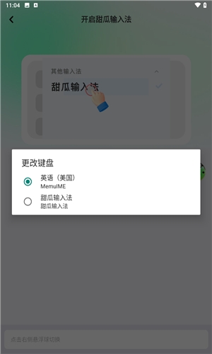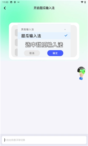 3、点击悬浮球,选择甜瓜输入法