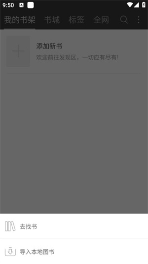 2、如果你的书架里一本电子书都没有,可以通过添加新书的方式来获取电子书。